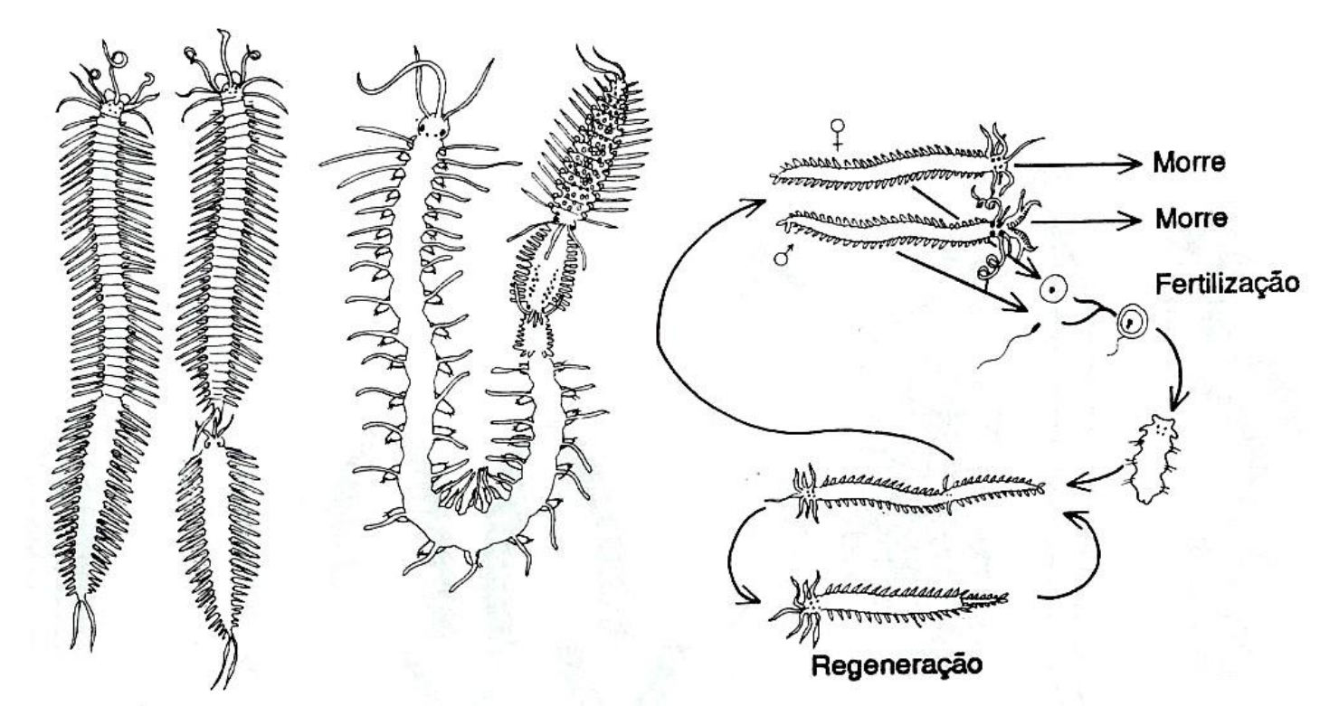 Na época da reprodução, os indivíduos começam a se reproduzir por brotamento, criando clones não funcionais, que carregam os gametas.